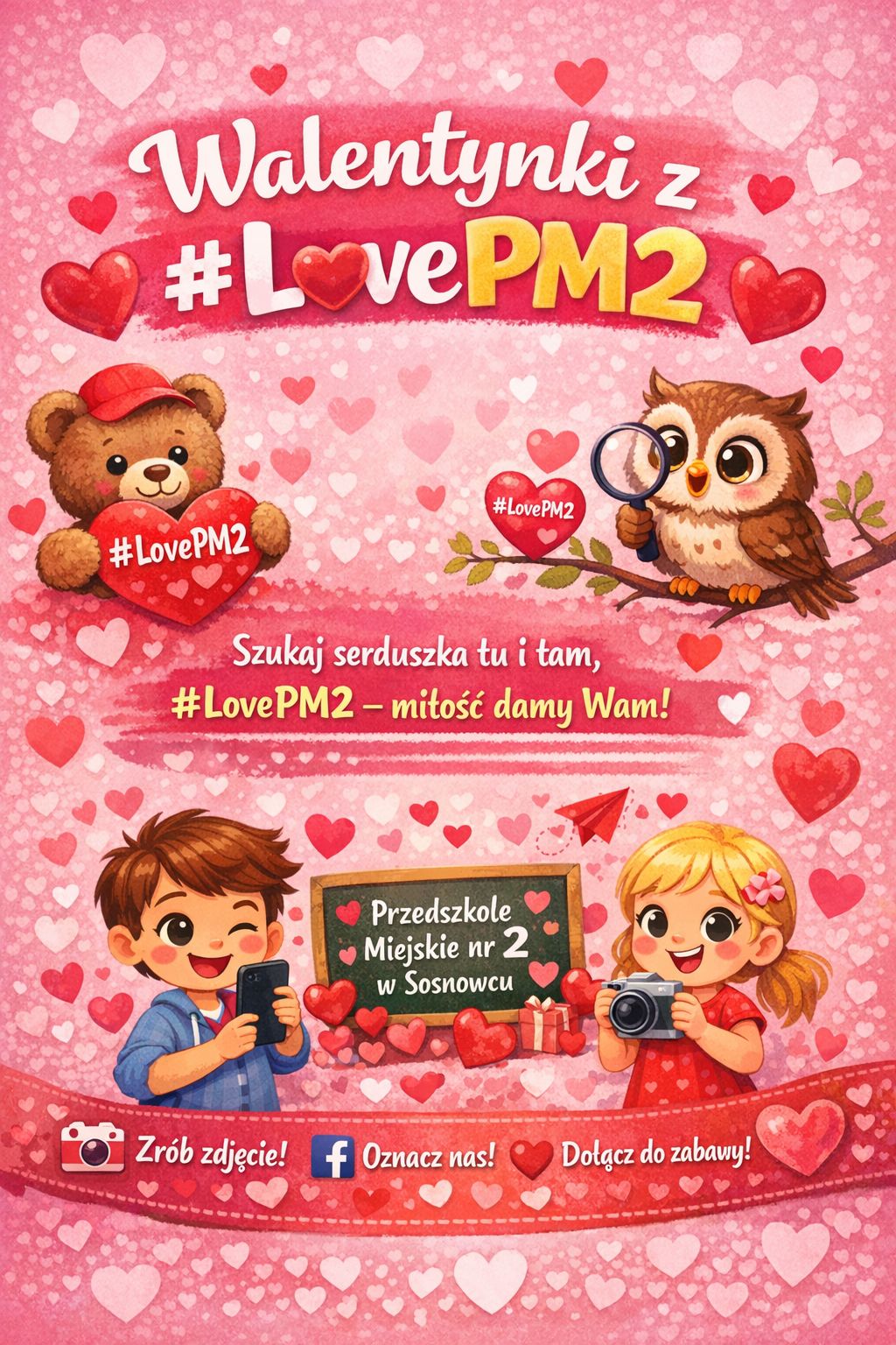 Z okazji Walentynek przesyłamy Wam morze uśmiechów, ciepłych przytuleń i radości na każdy dzień. Niech miłość, życzliwość i dobro zawsze będą blisko Waszych serc. Szukajcie serduszek, bawcie się razem z nami i dzielcie się miłością!  #LovePM2”