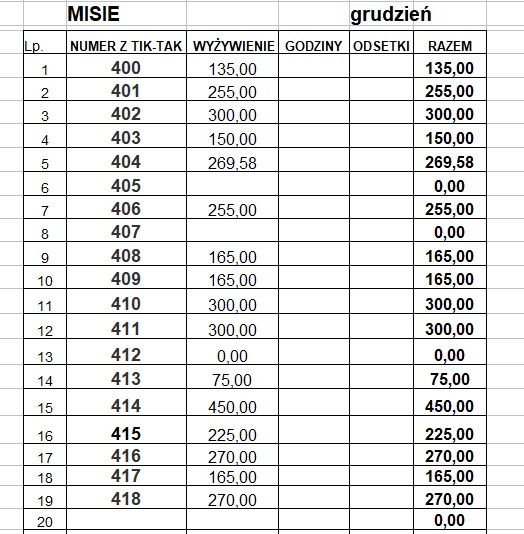 OPŁATY ZA GRUDZIEŃ: