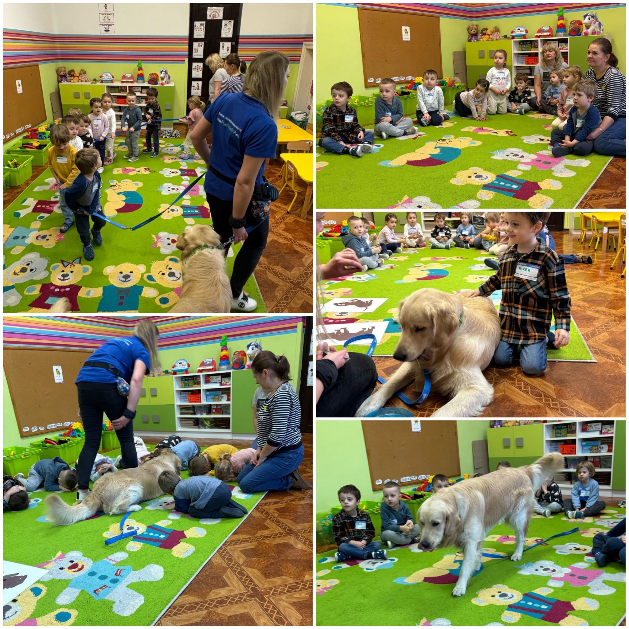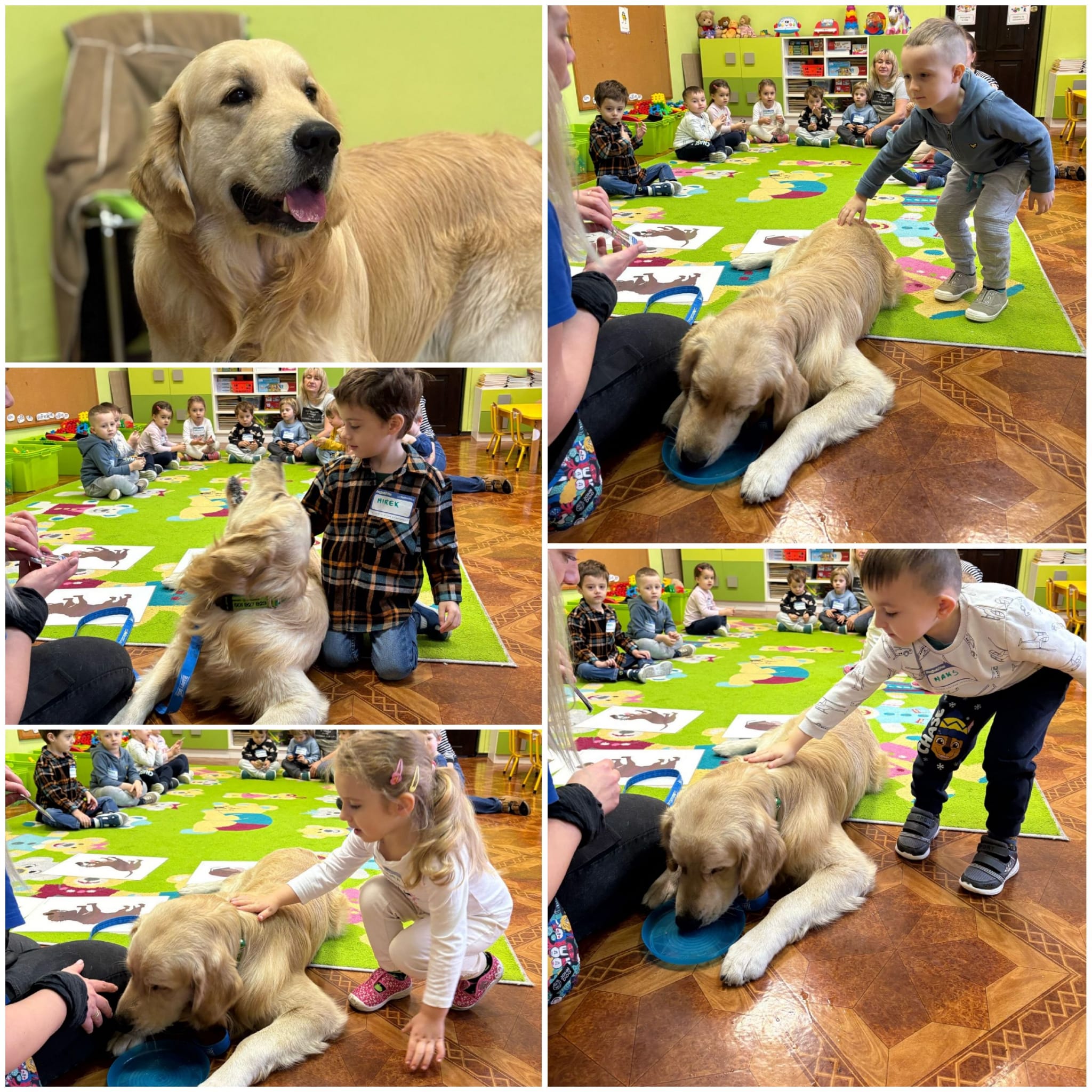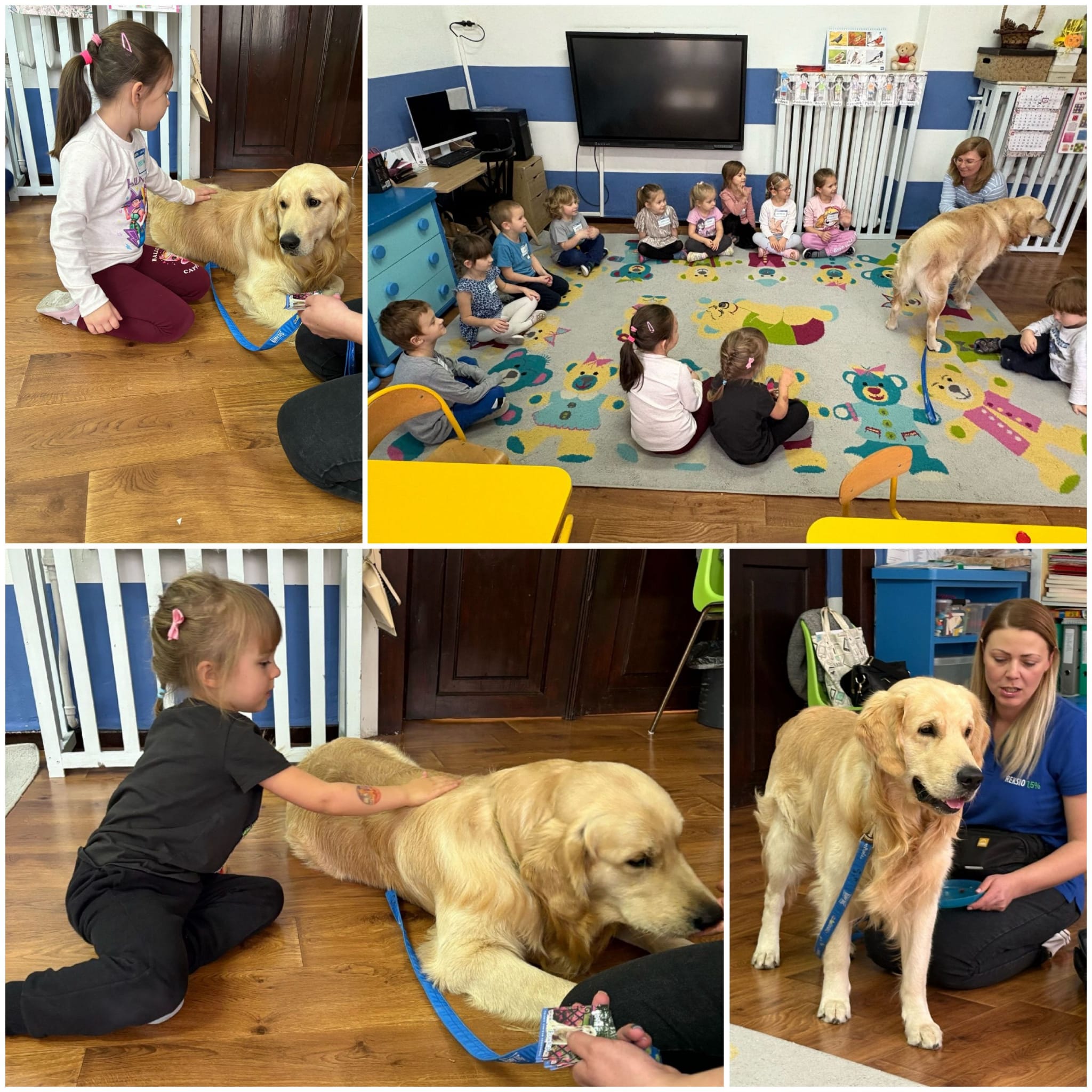 Ostatnio w naszym przedszkolu odbyły się wyjątkowe zajęcia z dogoterapii. Dzieci miały okazję poznać wyjątkowego psa, pogłaskać go i nauczyć się, jak bezpiecznie i odpowiedzialnie obchodzić się ze zwierzętami.