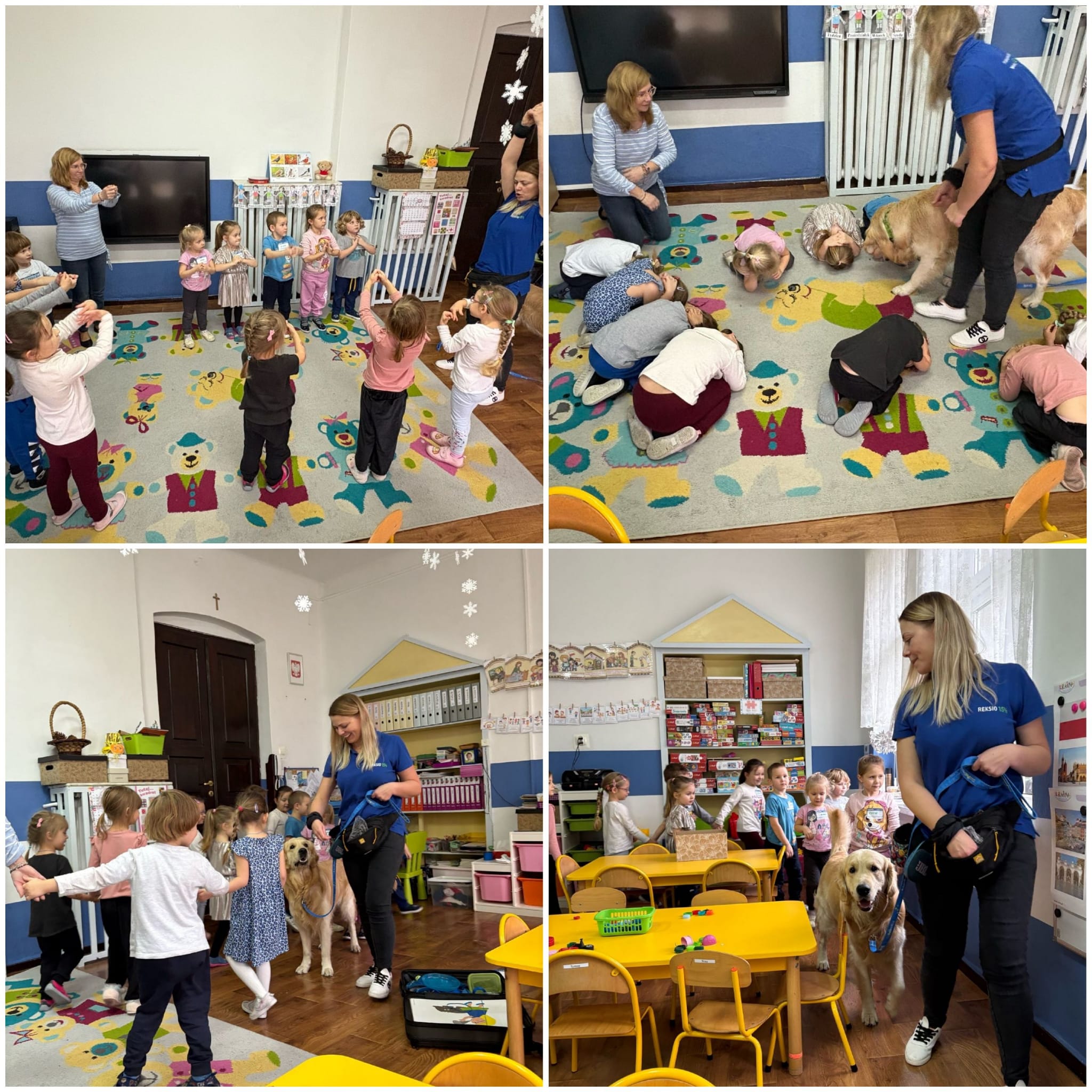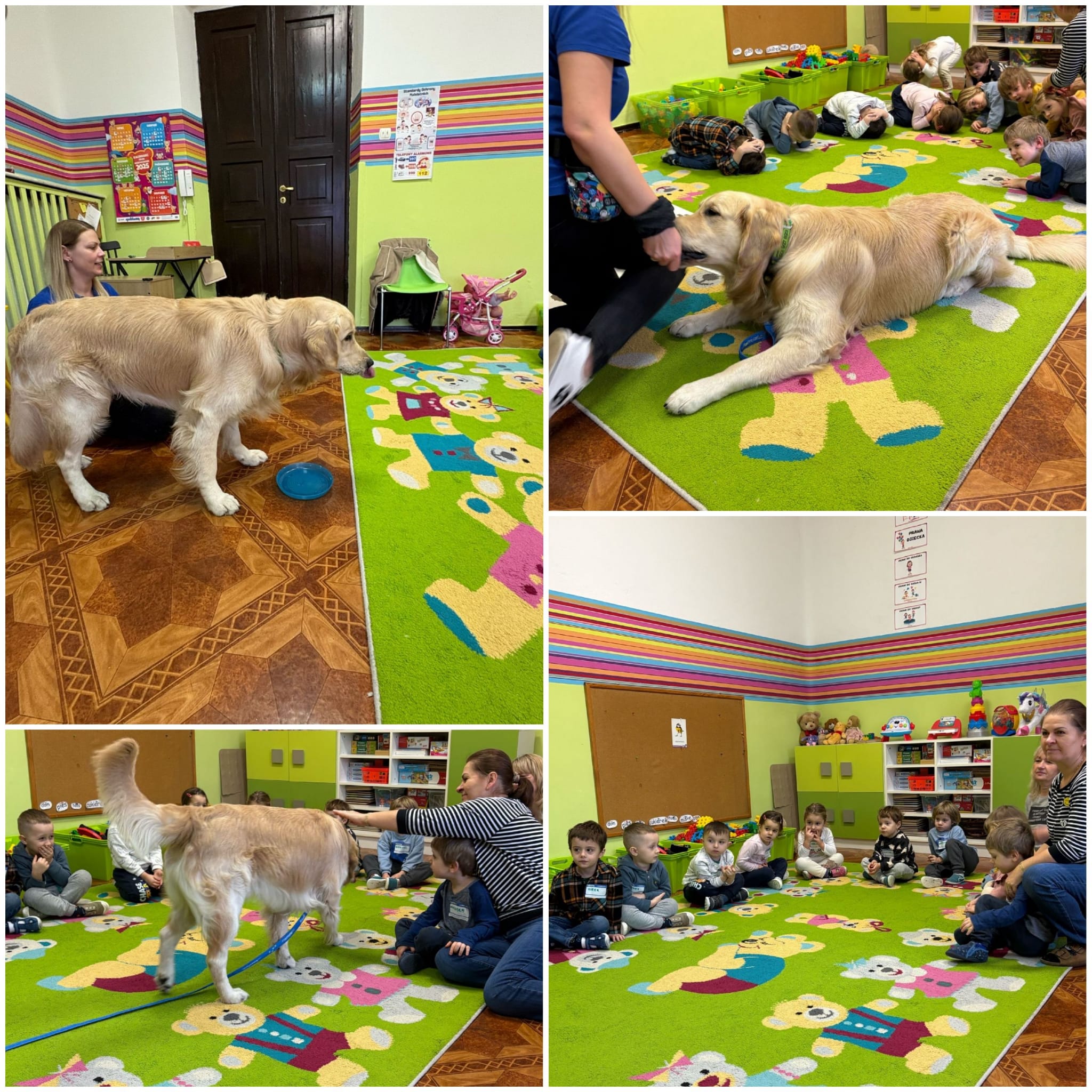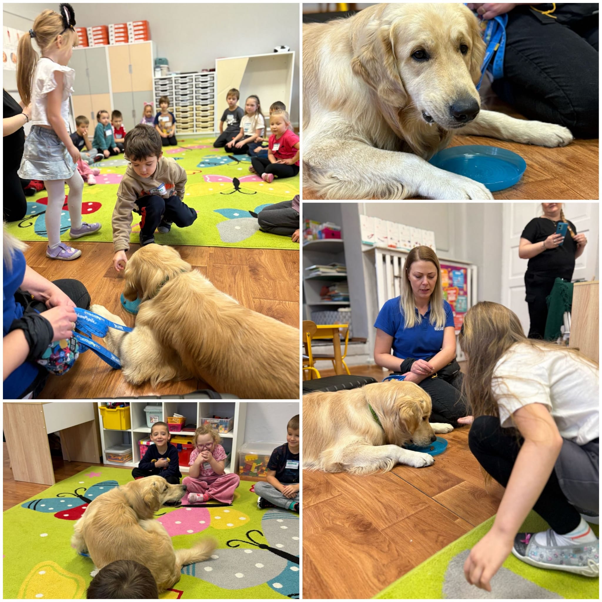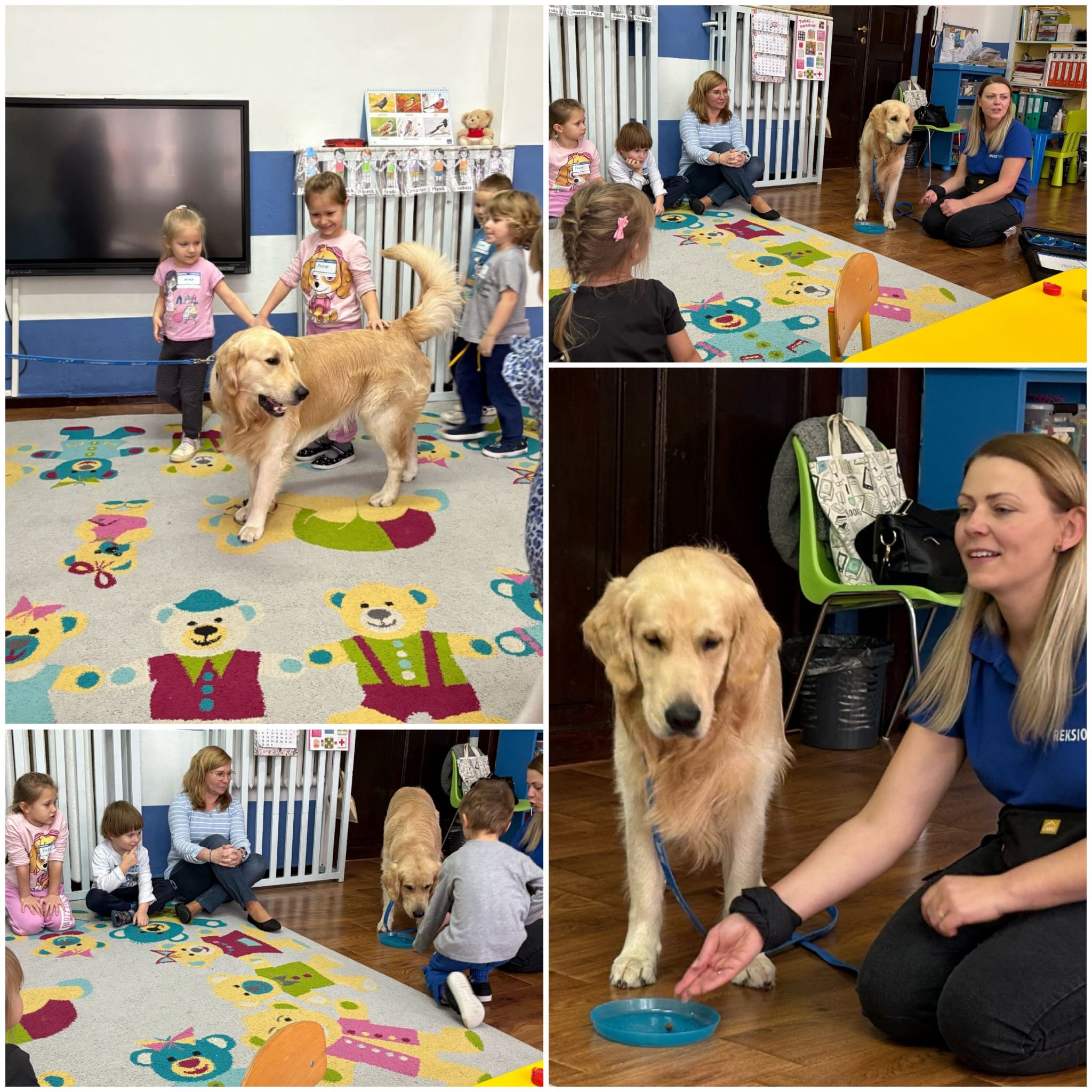 Ostatnio w naszym przedszkolu odbyły się wyjątkowe zajęcia z dogoterapii. Dzieci miały okazję poznać wyjątkowego psa, pogłaskać go i nauczyć się, jak bezpiecznie i odpowiedzialnie obchodzić się ze zwierzętami.