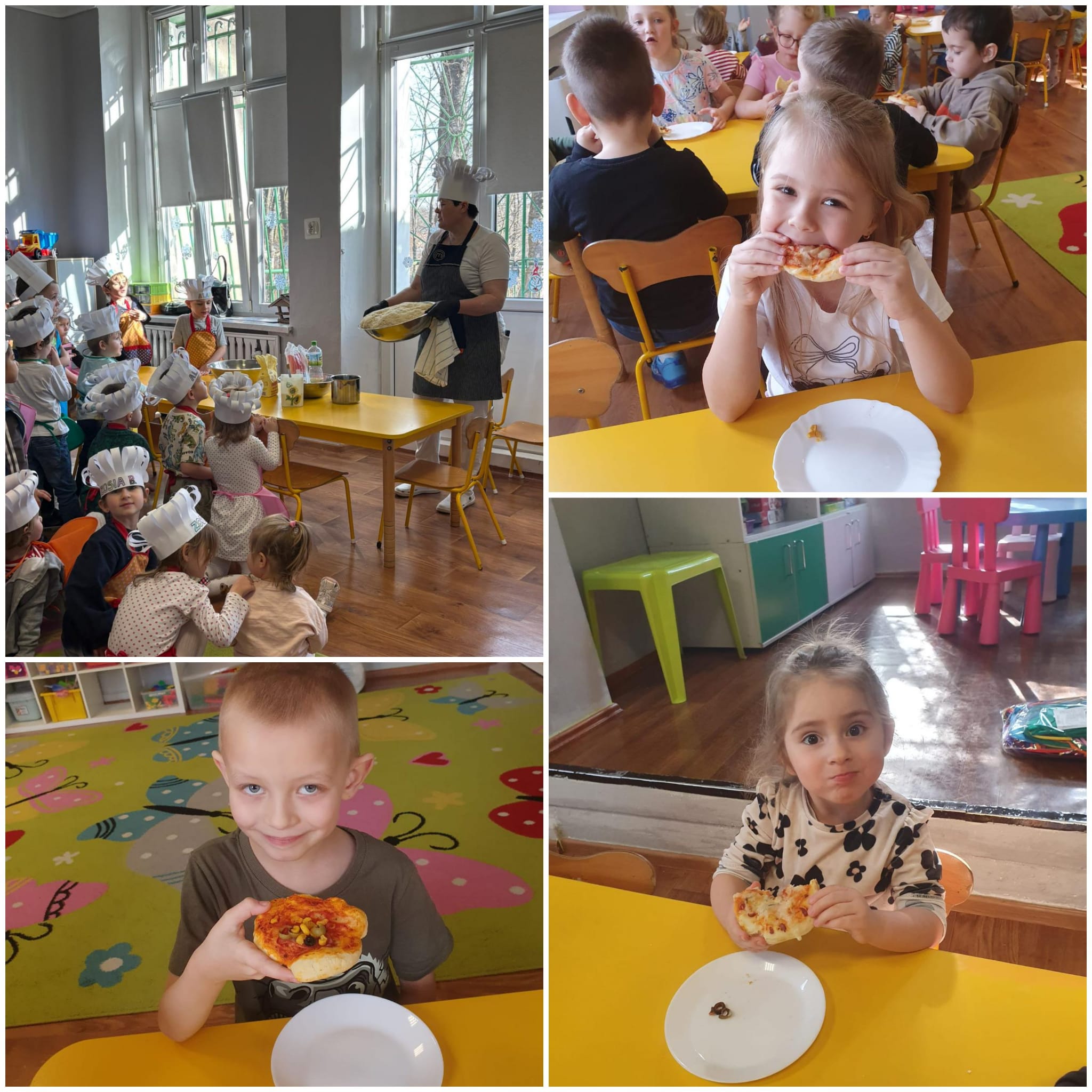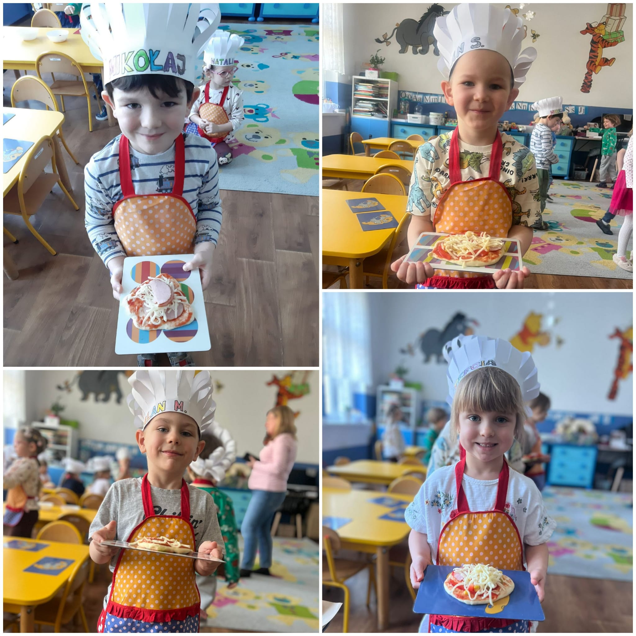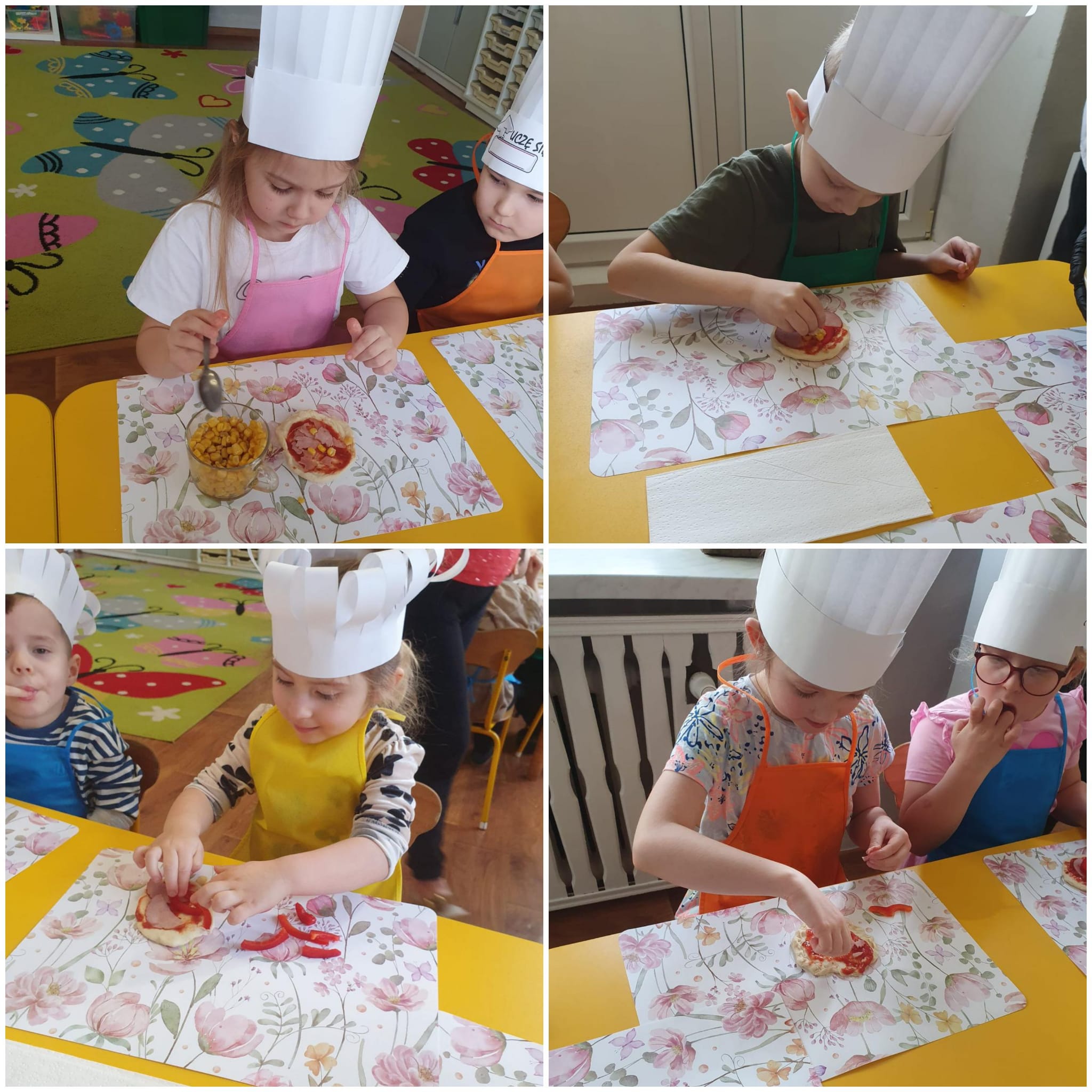 Zajęcia były również okazją do rozmów o warzywach i owocach, ich wartościach odżywczych oraz zasadach zdrowego odżywiania. Nie zabrakło także rozmowy o pizzy – jej składnikach oraz sposobach jej przygotowania.