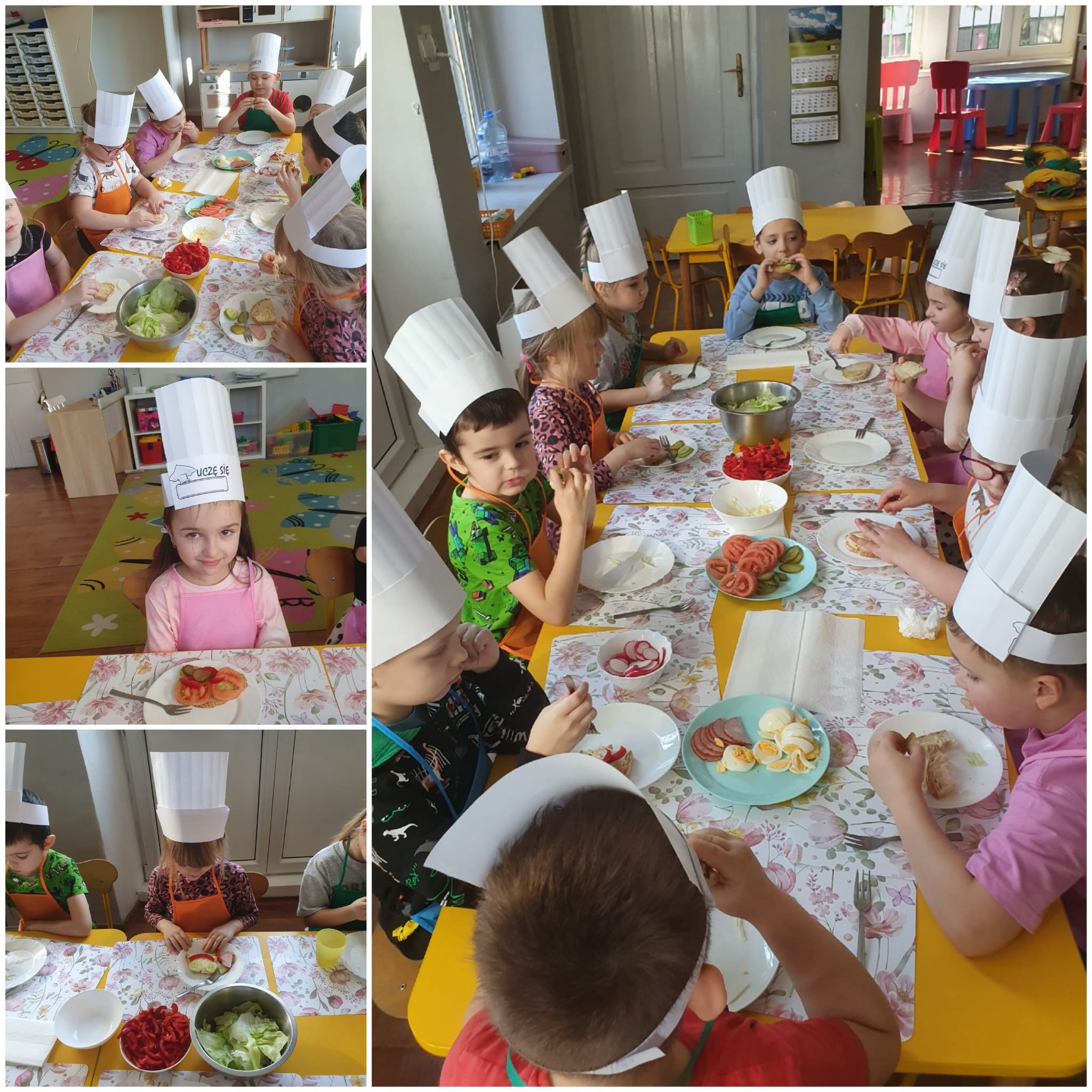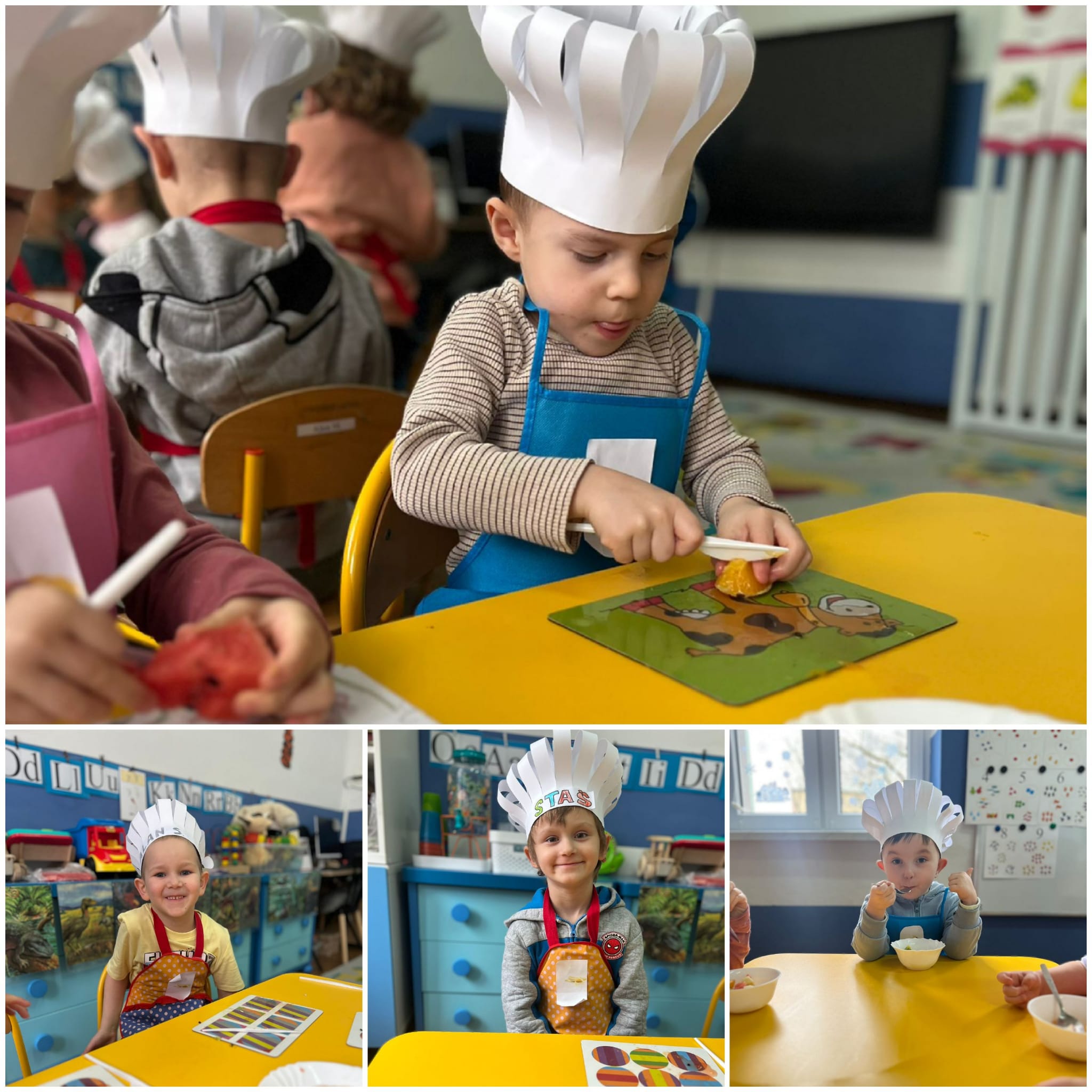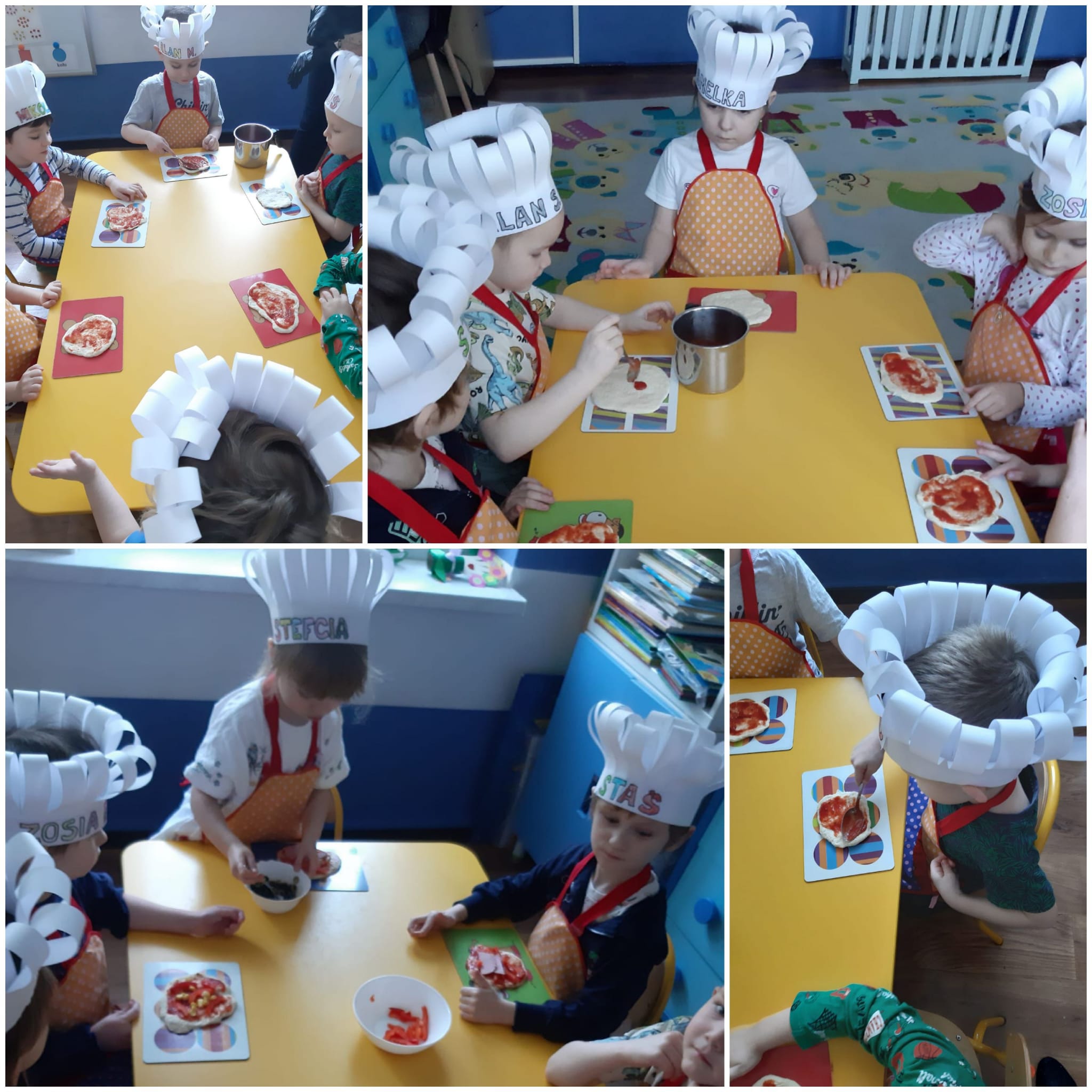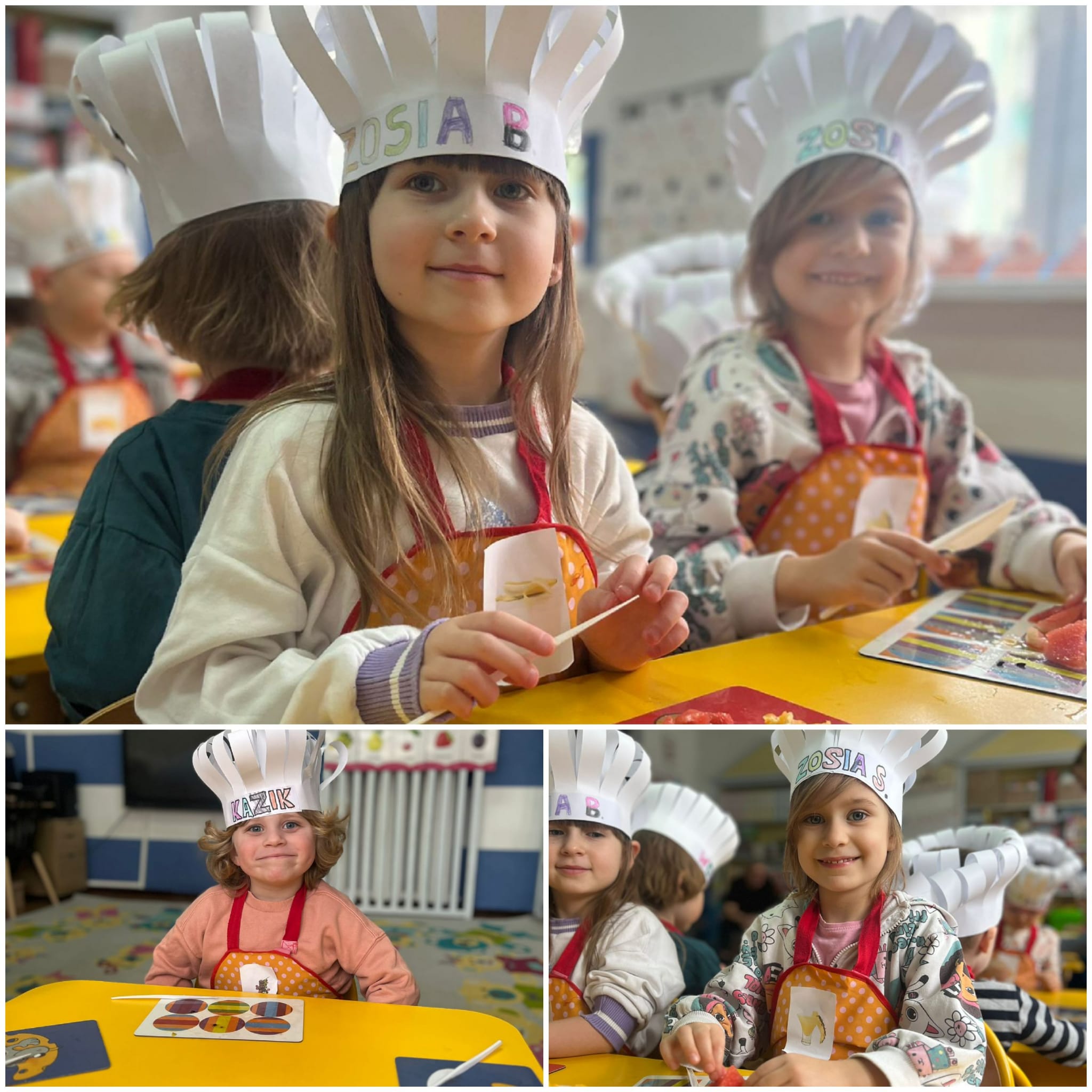 Zajęcia były również okazją do rozmów o warzywach i owocach, ich wartościach odżywczych oraz zasadach zdrowego odżywiania. Nie zabrakło także rozmowy o pizzy – jej składnikach oraz sposobach jej przygotowania.