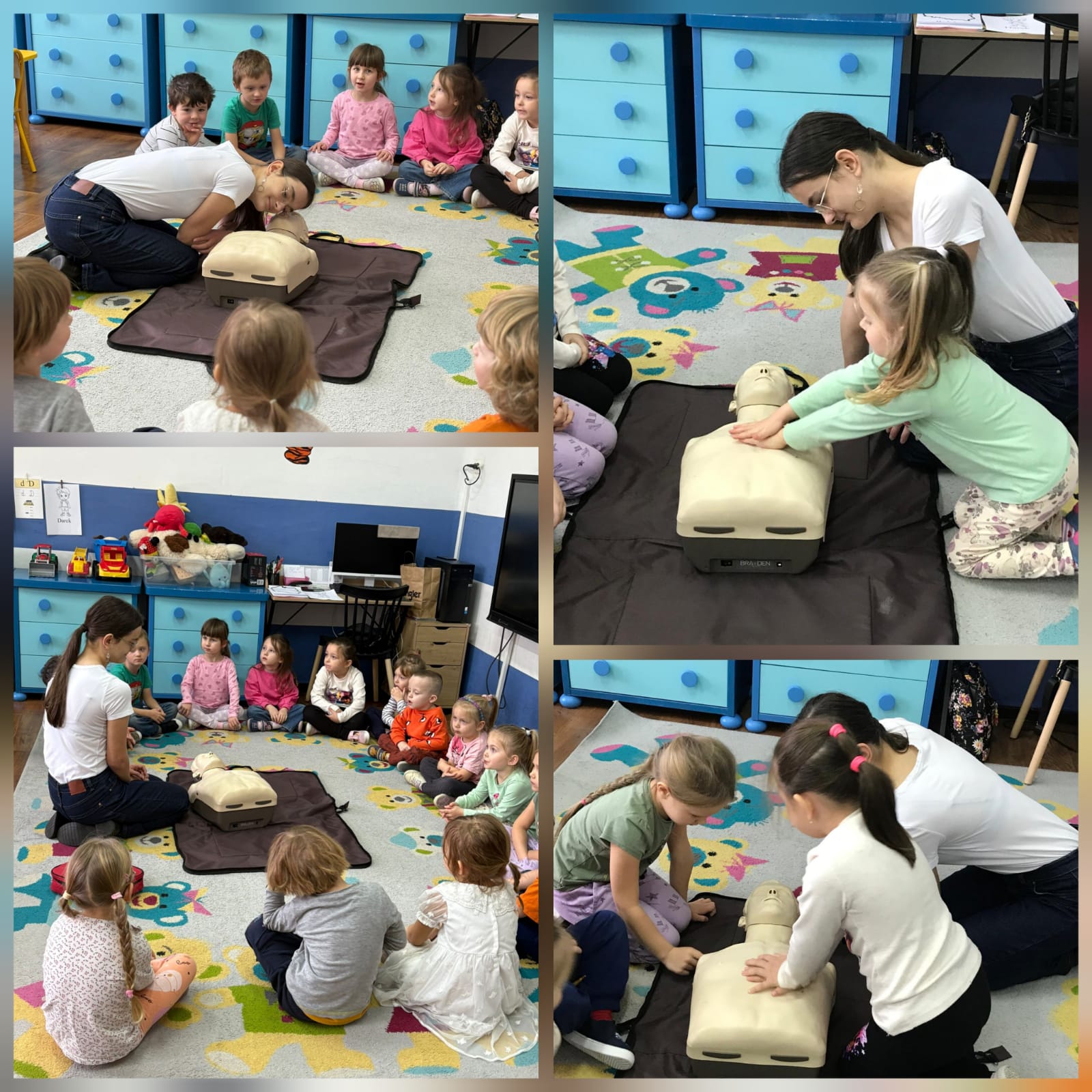 14 listopada nasze przedszkole odwiedzili wyjątkowi goście – uczniowie Szkoły Podstawowej nr 16, którzy przeprowadzili dla przedszkolaków zajęcia pokazowe z zasad udzielania pierwszej pomocy.